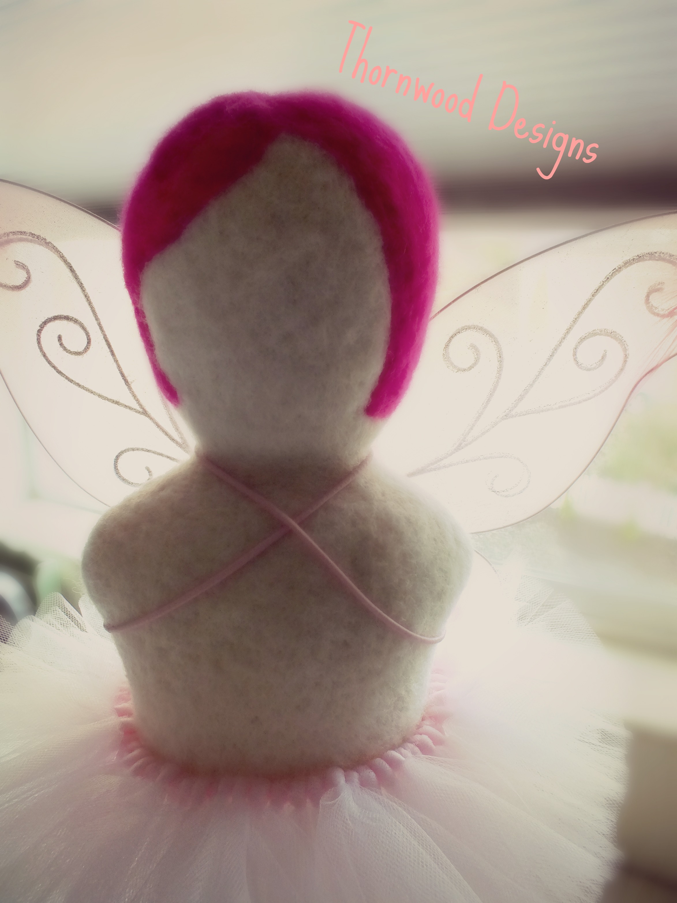 Each of my dress forms are created from my original pattern. I crochet the mannequin using a nylon crochet cord. I stuff the item with a high quality firm polyester fiberfill. The mannequin is attached to a black metal stand. I then spend many hours doing a needle felting process using 100% wool which creates a lovely folk art felted appearance. I used a slightly off white for the face and body, and a bright lovely fuchsia for the hair to add a unique interest to the mannequin.