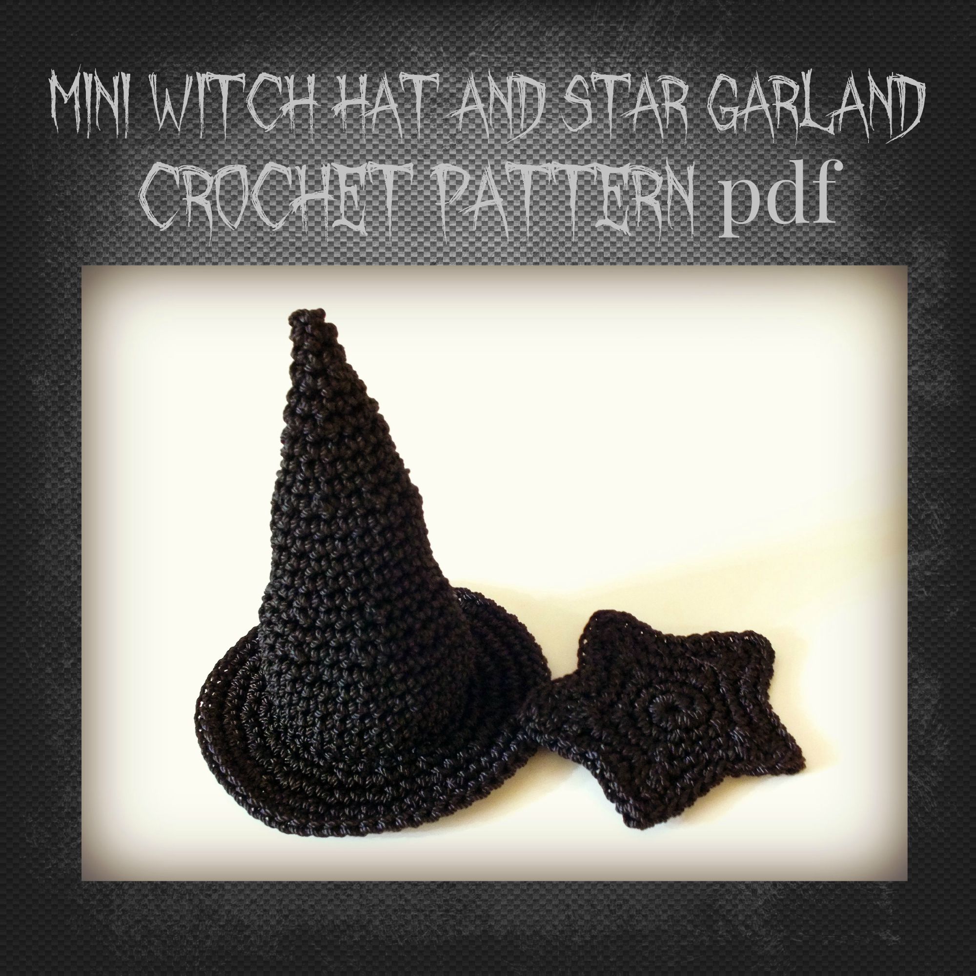 This is a new pattern I designed: A Primitive witch hat crochet design with a little star. You can make a number of these then string them together to create a primitive Halloween decoration.